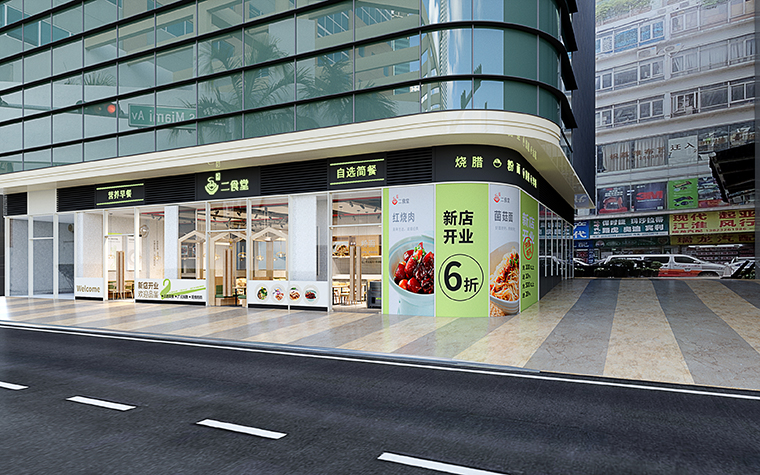 商務(wù)簡餐、現(xiàn)炒快餐空間裝飾裝修設(shè)計(jì)、快餐店門頭招牌設(shè)計(jì)、自選快餐餐線設(shè)計(jì)